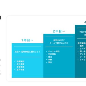 “人と動物のこころに寄り添う”ことを大切にしつつ、地域の中核となる動物病院を目指しています。現在15名のスタッフが在籍していますが、来院患者数の増加に伴い積極的にスタッフの増員を行っています。
